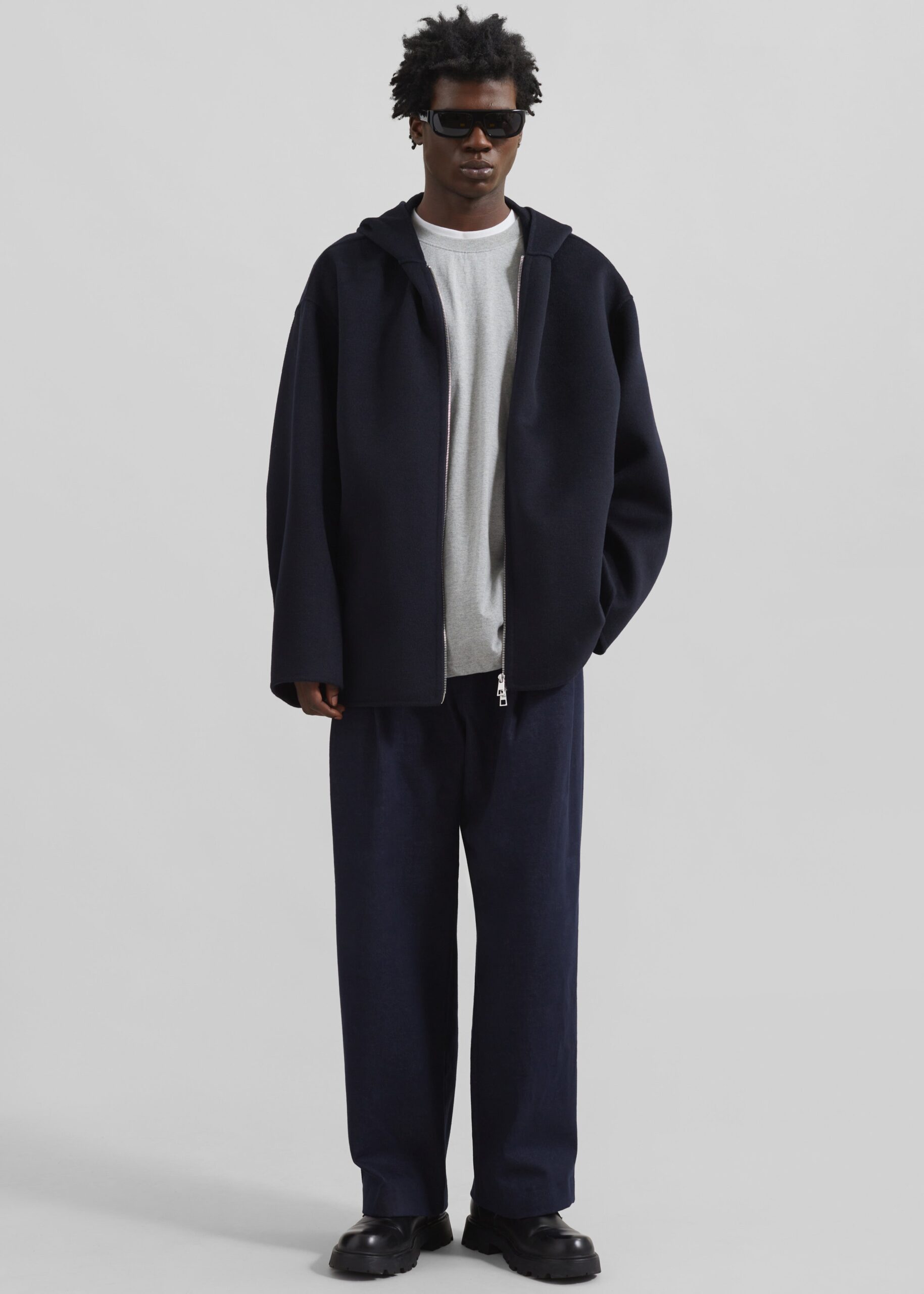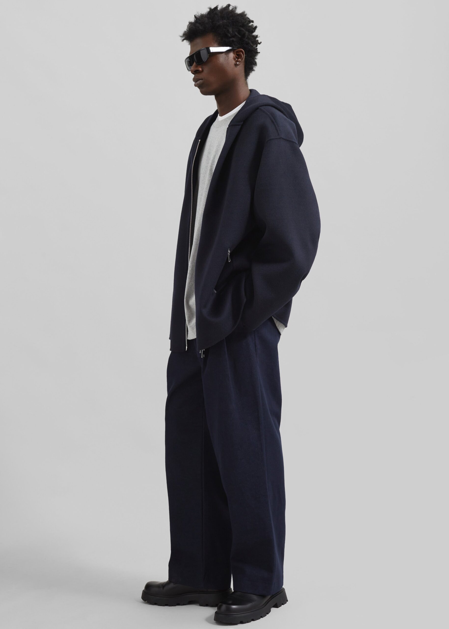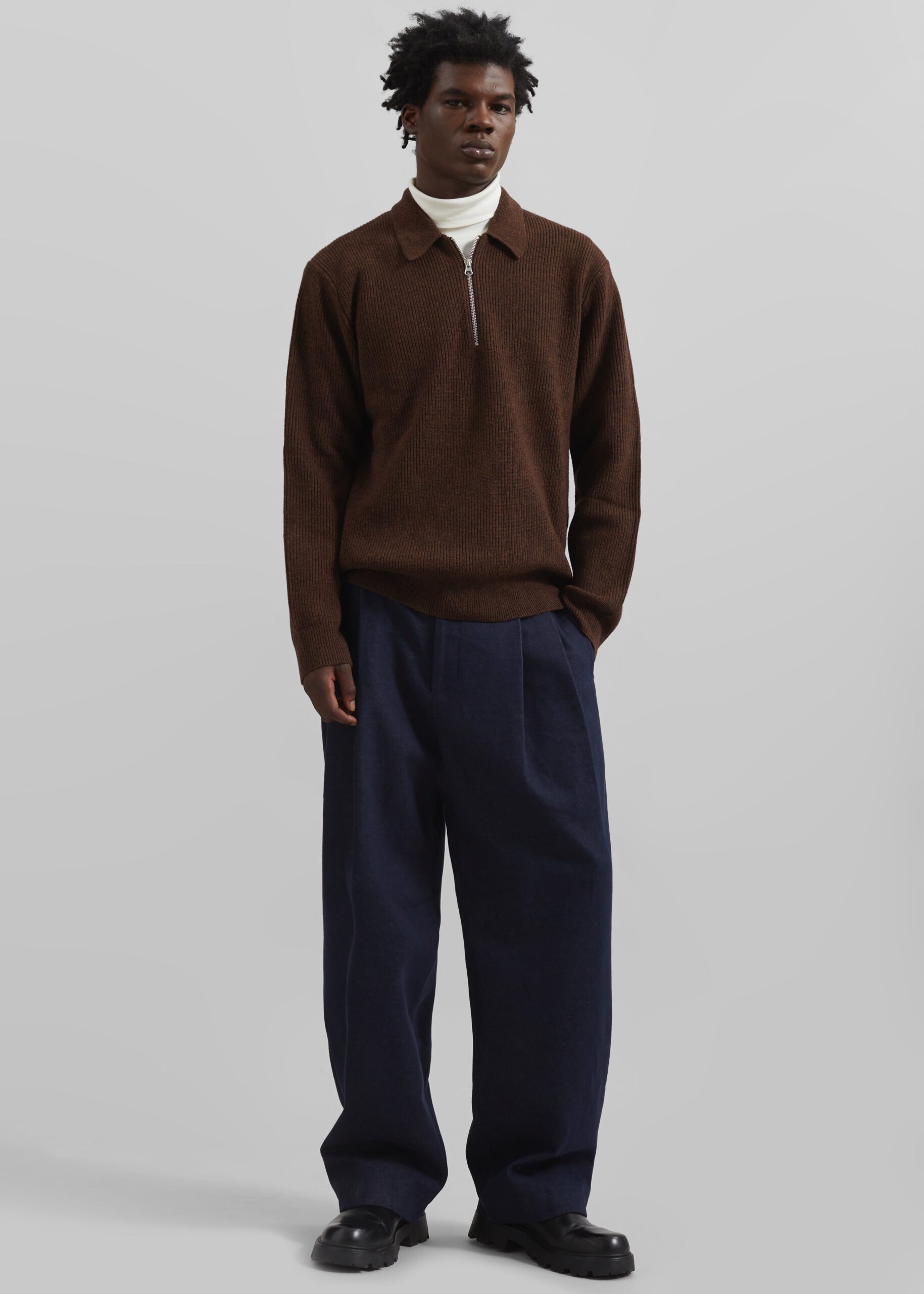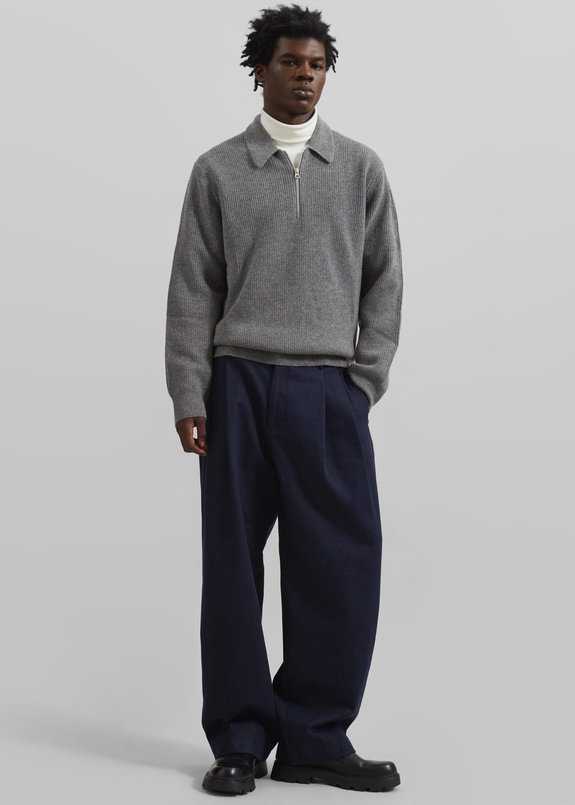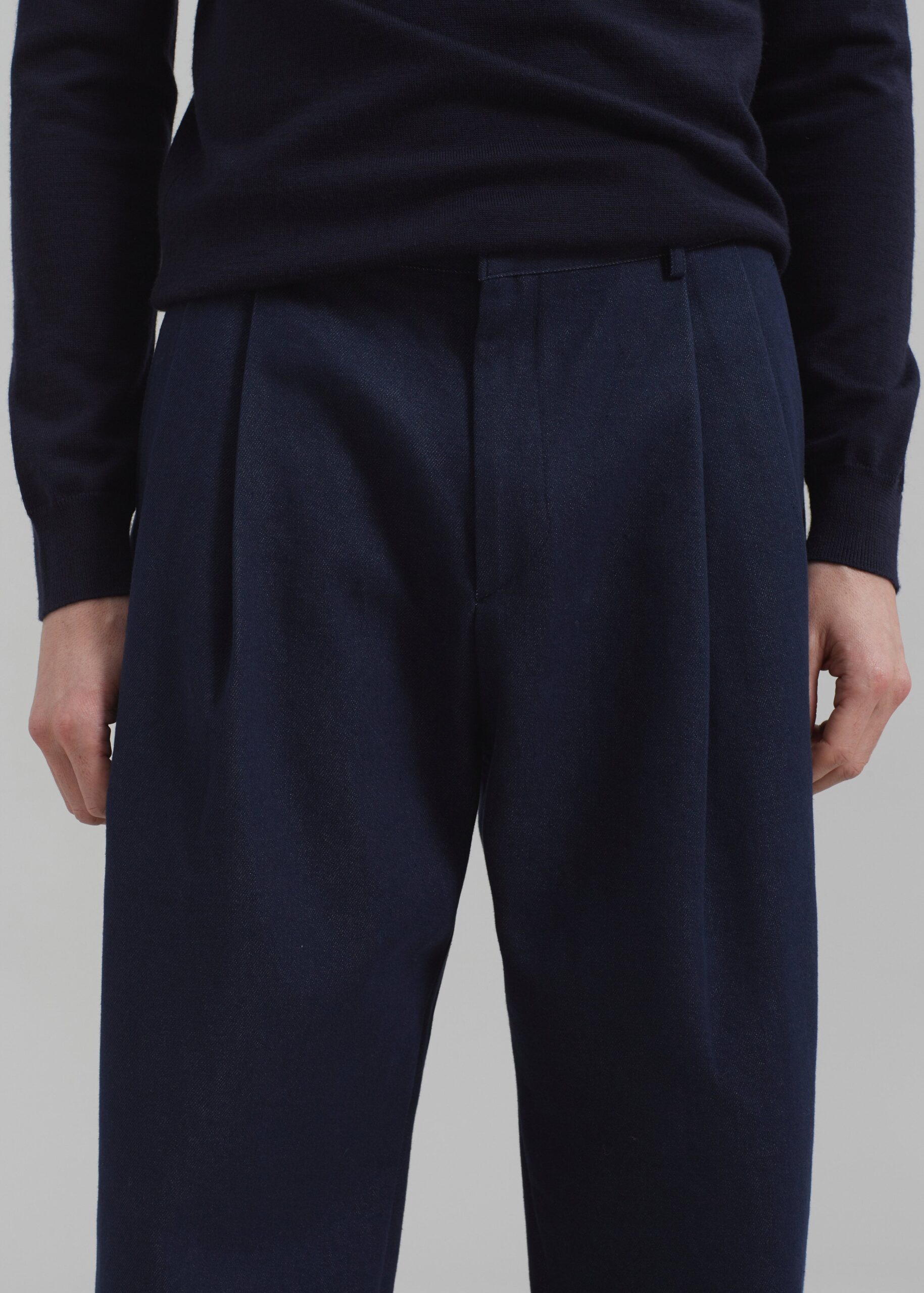 Stephen Pleated Denim Trousers – Navy
