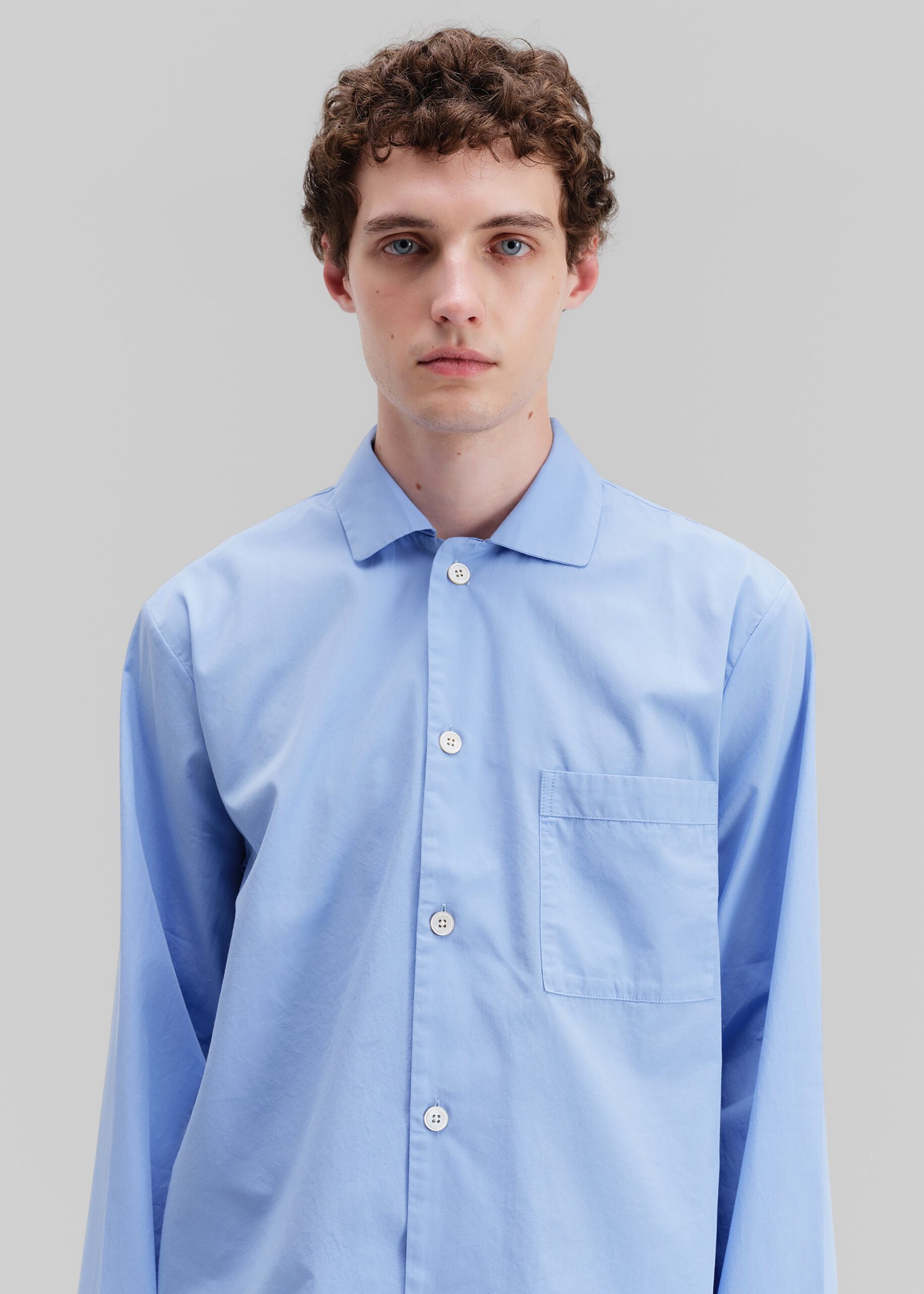Tekla Poplin Pyjama Shirt – Cornflower Blue